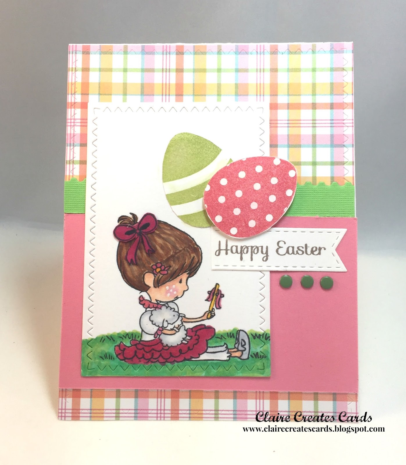 I enlisted Cassidy's help in picking out my winner; it was just too difficult to do it alone!  We narrowed it down to a couple of choices, but in the end, Laurie's card with those sweet little white pups was declared her favorite!  I liked it too, especially with that wonderful pink gingham in the background and the fun sketch!  Congrats, Laurie, on being my Headliner this week!